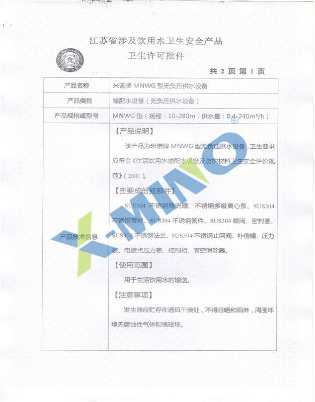 您好,歡迎瀏覽南京米諾給排水設備有限公司網站!